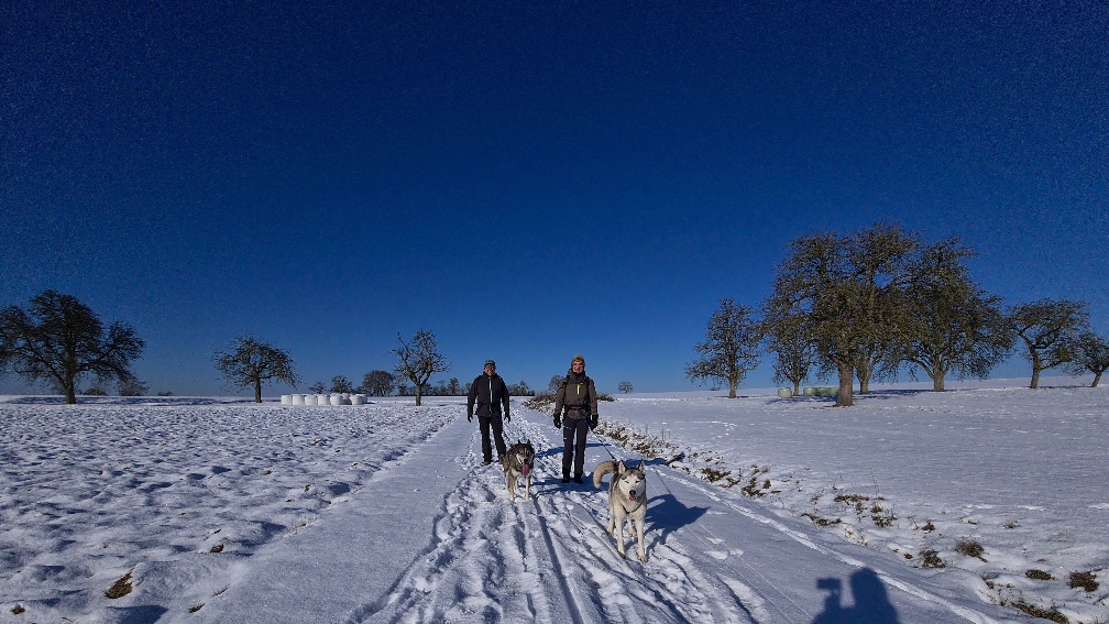 Durch die Zugkraft des Huskys wirst du beim Laufen ordentlich unterstützt und du erhältst ganz schön Vortrieb. Aber wer jetzt denkt, dass dies ein gemütlicher Spaziergang wird, der liegt leider falsch. Huskies haben einen flotten Gang und du kannst dich auf ein etwas schnelleres Tempo einstellen. Aber keine Angst, du hast ja "nur" einen Husky vor dir, den du auch etwas abbremsen kannst.