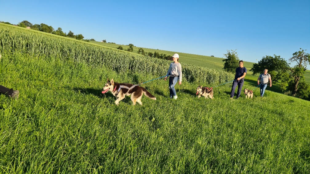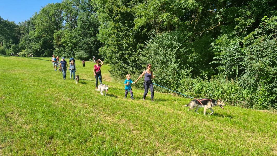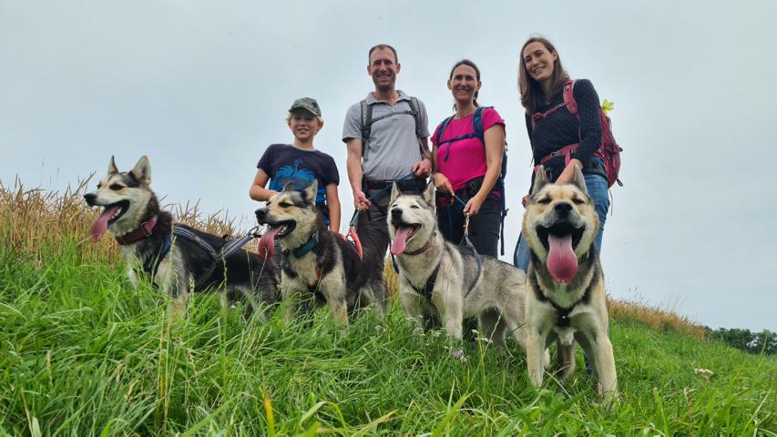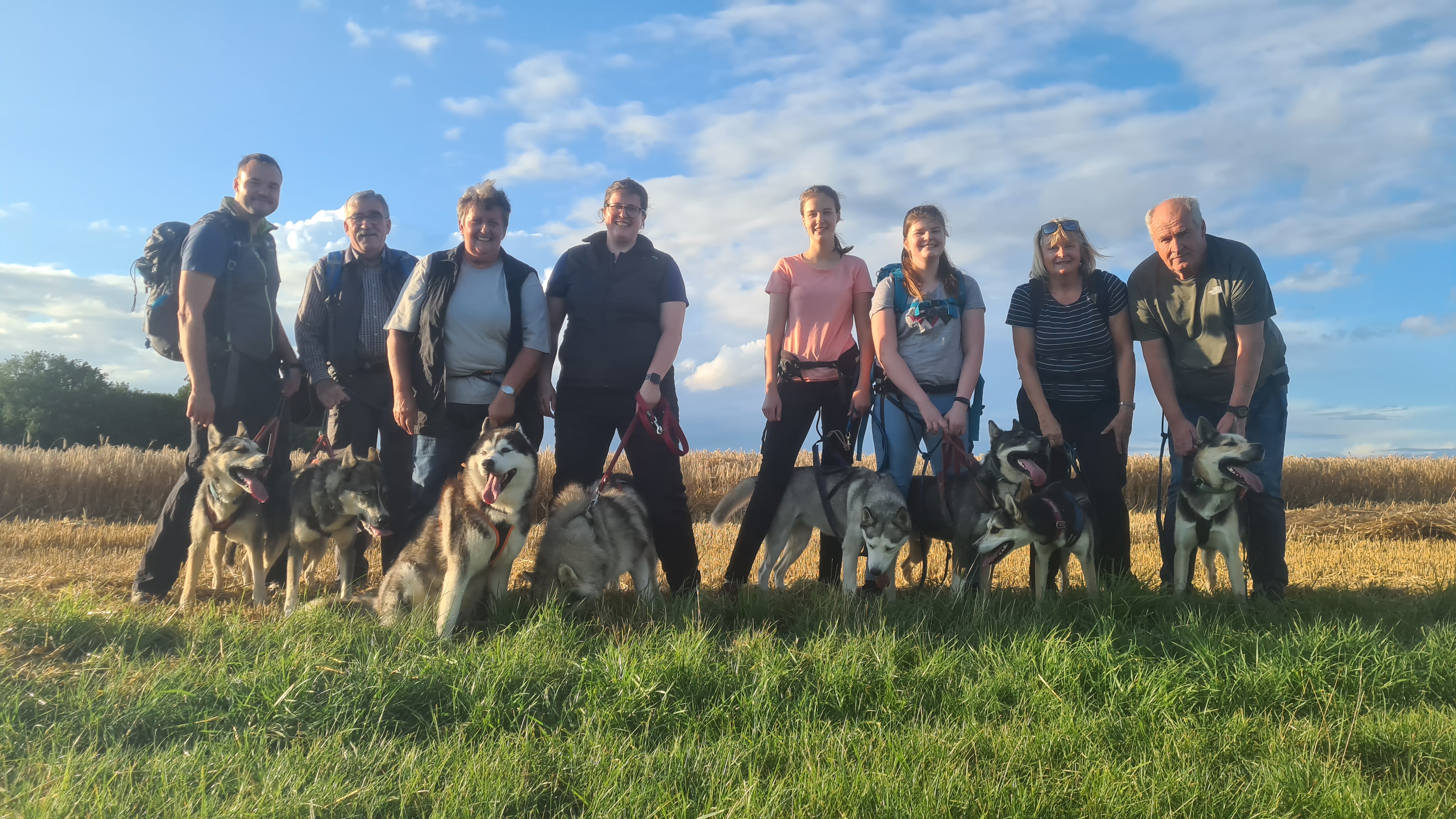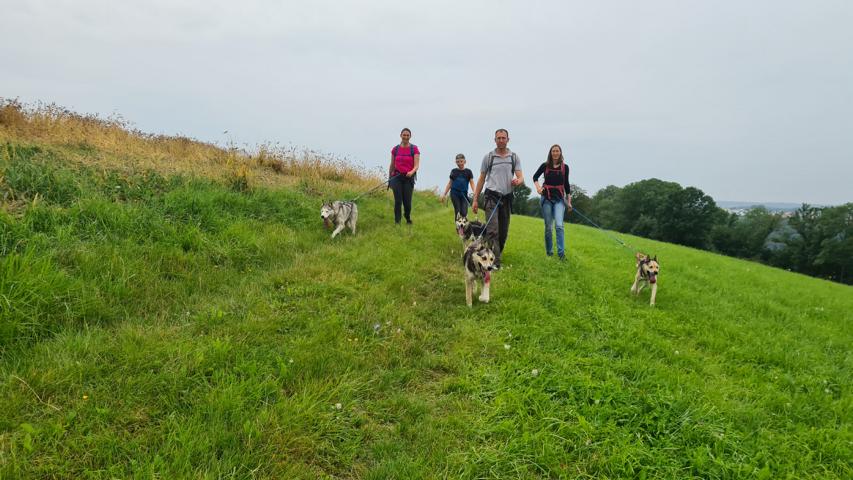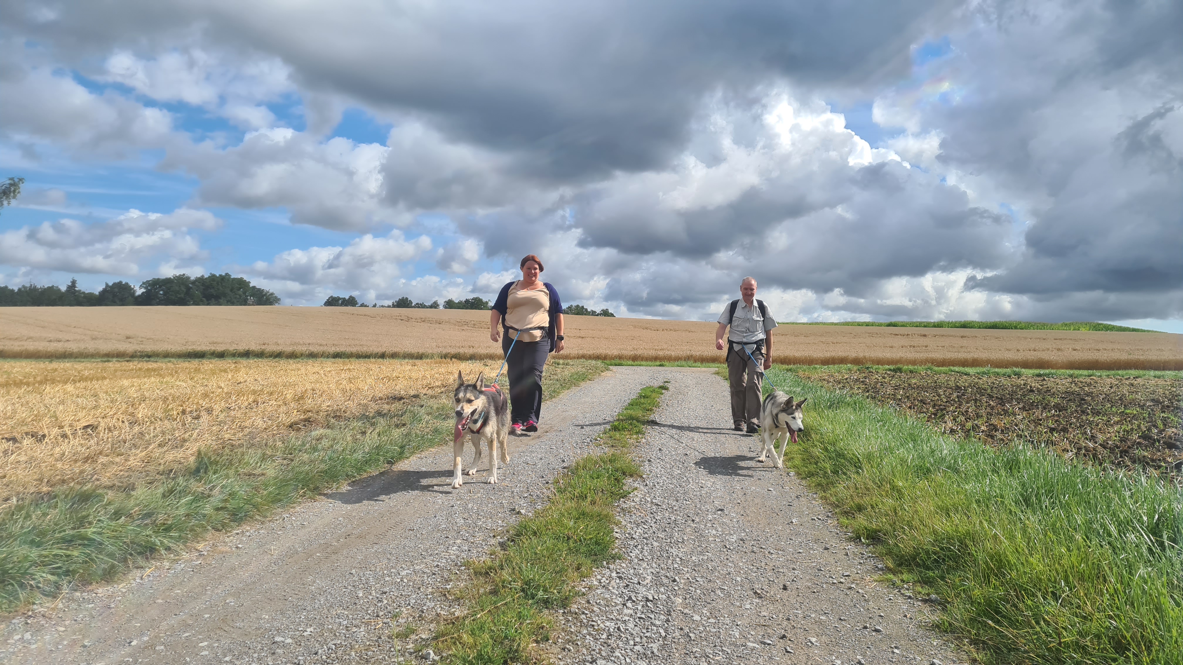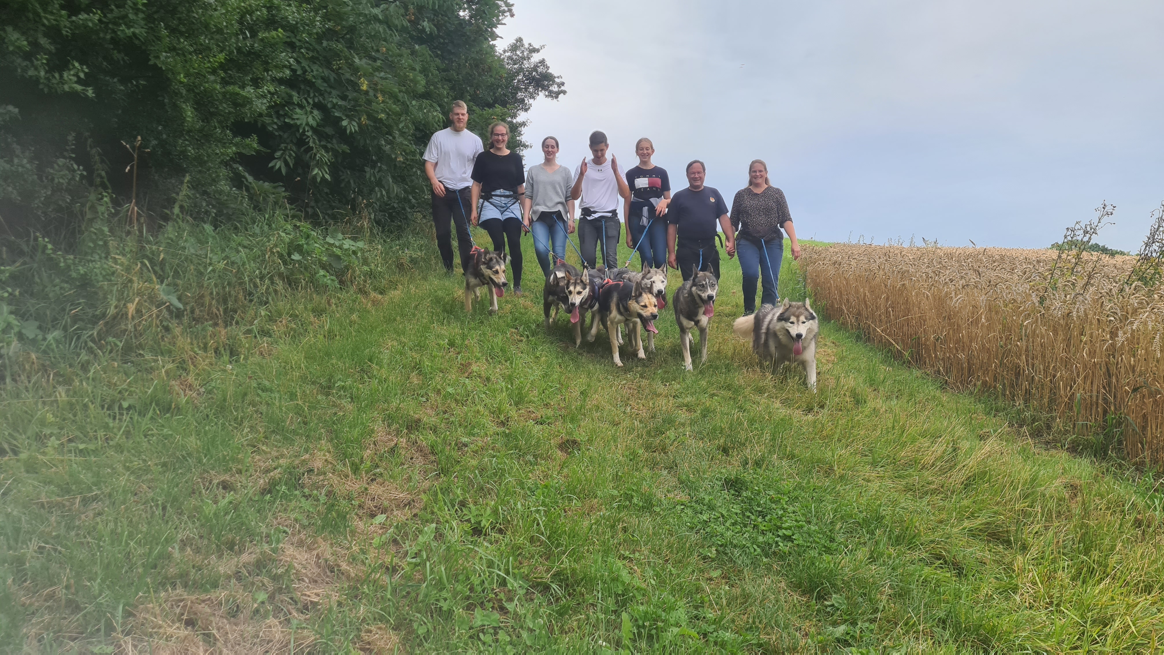 Die Husky-Wandertour hat eine Länge von ca. 5 - 6km und es geht mal mehr und mal weniger über unbefestigte Wege und je nach Wetter auch durch nasse und matschige Wiesen oder Waldpfade. Deshalb raten wir zu guten Wanderstiefeln oder Trekkingschuhen, die idealerweise wasserdicht sind.