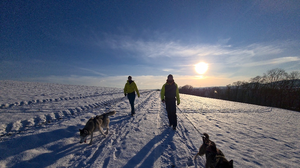 Für eine Husky-Wanderung müsst ihr keine Sportskanonen sein, aber ihr solltet in der Lage sein, 5 - 6 km im Wandertempo zu gehen. Da Huskies nun mal Zughunde sind und durchaus sehr kräftig ziehen können, solltet ihr körperlich in der Lage sein, einen Hund halten zu können.
